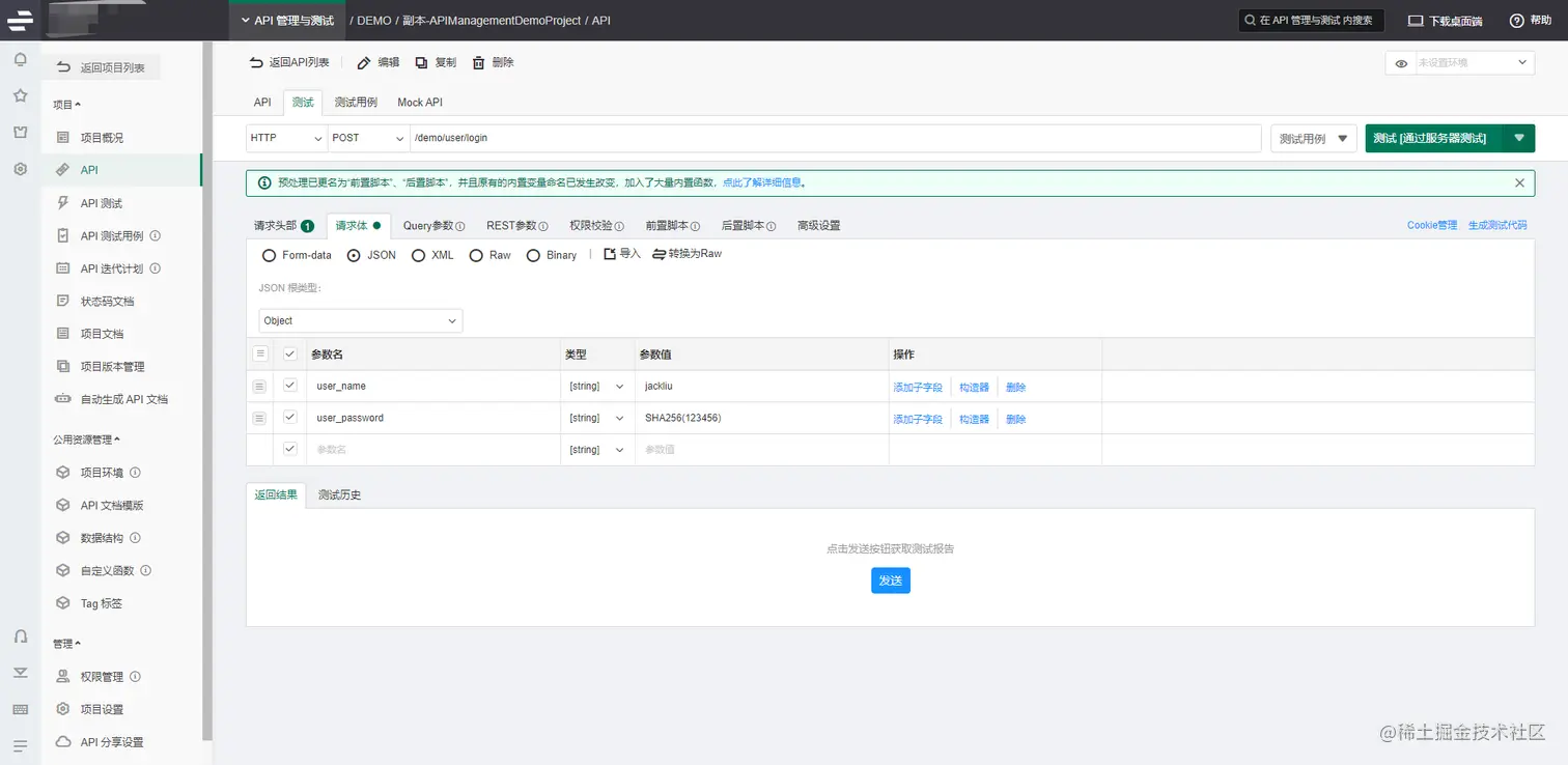 成功导入API文档可对API进行快速测试,点击界面上的测试按钮,系统会同步API文档中记录的参数,只需要点击测试即可对API进行测试并生成报告,测试结果可以保存为测试用例,方便进行记录与重复测试。