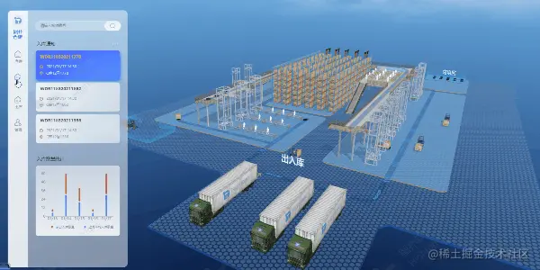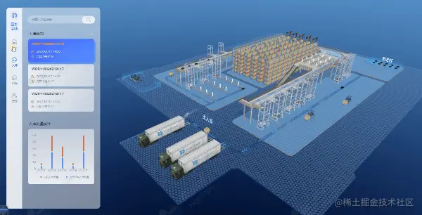 Hightopo 3D 可视化物流仓储监控系统打造绿色仓储物流的数据运维管理一体化。全面提升运维管理的智能化水平,以实现感知、调配、管理等。保障现代化智能仓储的安全运行,赋能物流行业绿色化、精细化、智能化发展。更多行业应用实例可以参考图扑软件官网案例链接:www.hightopo.com/demos/index…