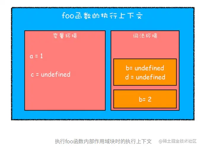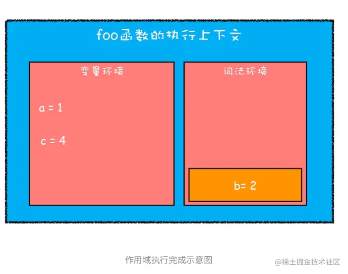 当执行完块级作用域的代码后,执行上下文就变成如下图所示: