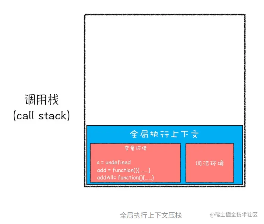上面我们了解了V8引擎如何编译执行一段JavaScript代码的,但是执行过程中还有一些细节需要了解,比如调用栈,执行上下文,变量环境, 词法环境,this指向等等。