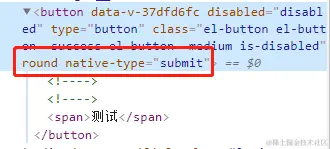 作为使用者,我们应该是希望round和native-type="submit"能够传到el-button,产生应有的效果。然而,round和native-type="submit"仅仅是挂在了根元素的attribute上,并没有真正起到应有的作用!