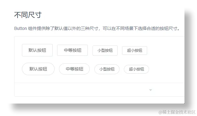 举个例子,el-button有个属性是size,用于控制按钮组件的尺寸。