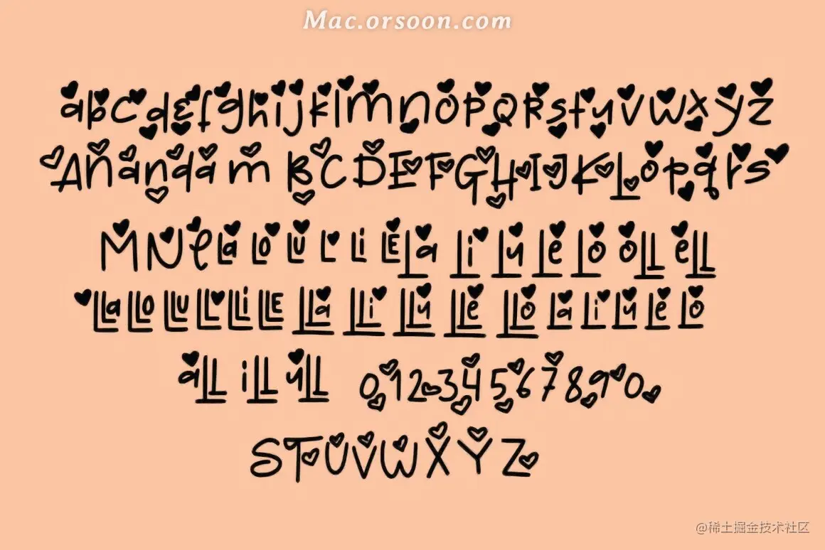 Santa Love俏皮可爱字体整体看上去给人一种自然而然的感觉,不像是被精心设计出来的,更像是一个懵懵懂懂的孩子拿着笔在写字一般,很好的说明了可爱类型字体的特征!
