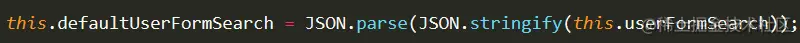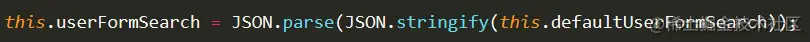 this.userFormSearch = this.defaultUserFormSearch;(这种做法是错误的); 如果清空的时候不深拷贝备份的数据this.defaultUserFormSearch,那么this.defaultUserFormSearch将会和this.userFormSearch关联上,