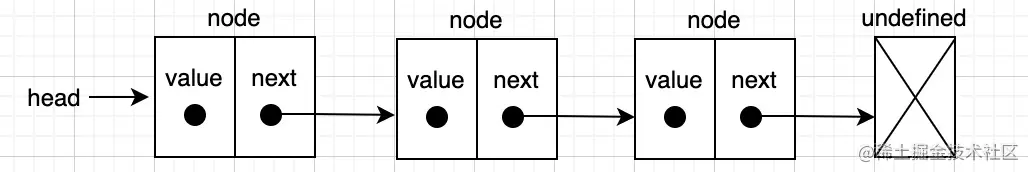 // current.next为undefined就表示已经是链表的末尾,然后把最后一个节点的指针属性设置为下一个元素