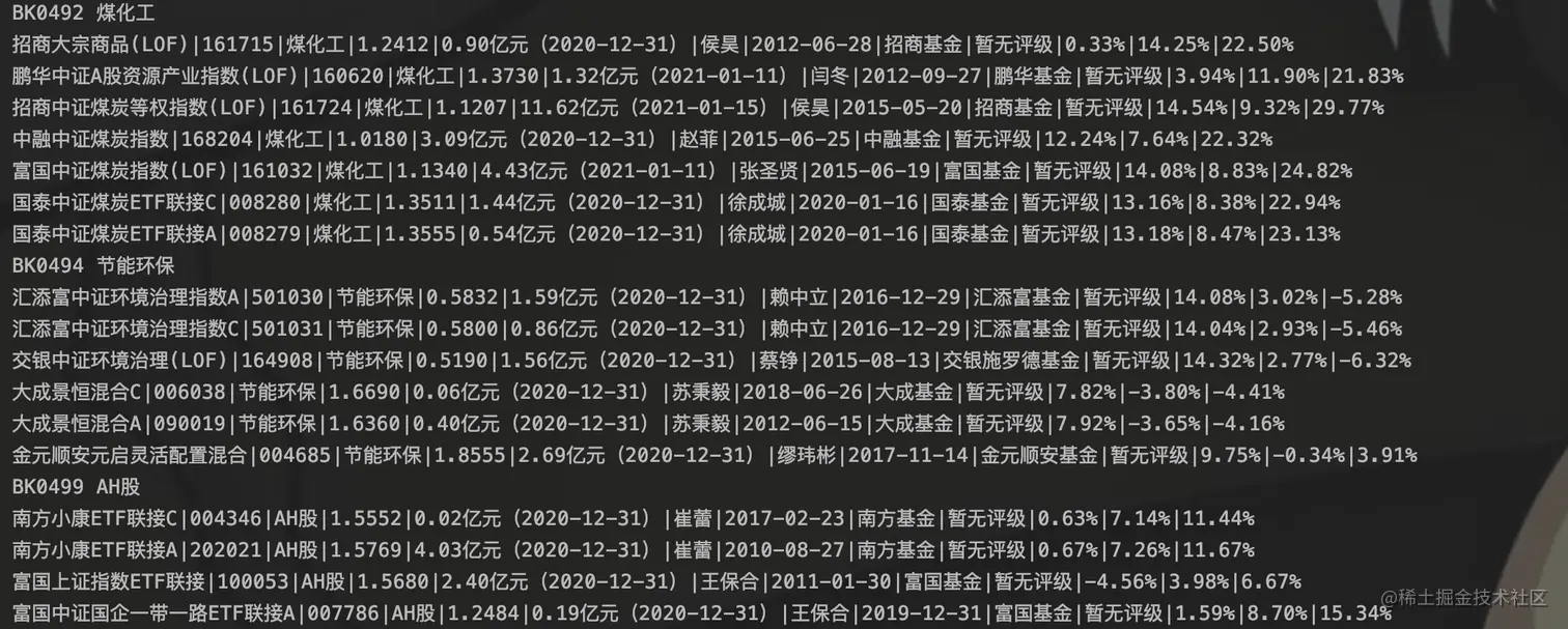 # 解析每个分类下的基金列表