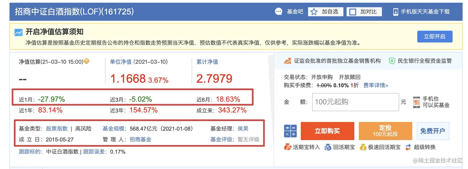 点击招商中证白酒,进入详情页面。