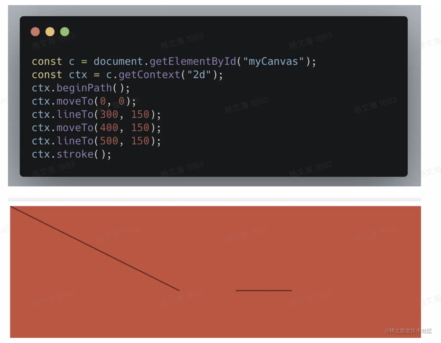 从上面的示例可以看到,Canvas 中绘制线段,只需要通过moveTo将画笔(Canvas 绘图上下文)定位到线段的起点,然后通过lineTo 绘制到线段的终点即可。多个首位相接的线段可以省略moveTo,直接lineTo。 要实现图十的空段效果,只需要moveTo到新段的起点即可,例如: