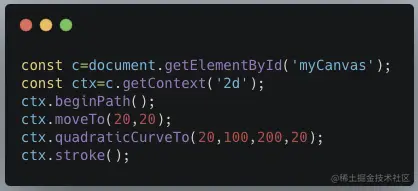 函数只定义了控制点和终点,起点需要我们使用moveTo来确定,如图二十三的代码示例。