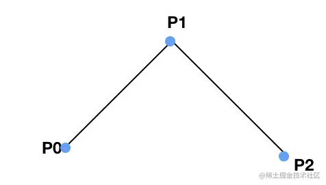 给定点P0,P1,P2 ,P0 和 P2 为起点和终点,P1为控制点。从P0到P2的弧线即为一条二次贝塞尔曲线。