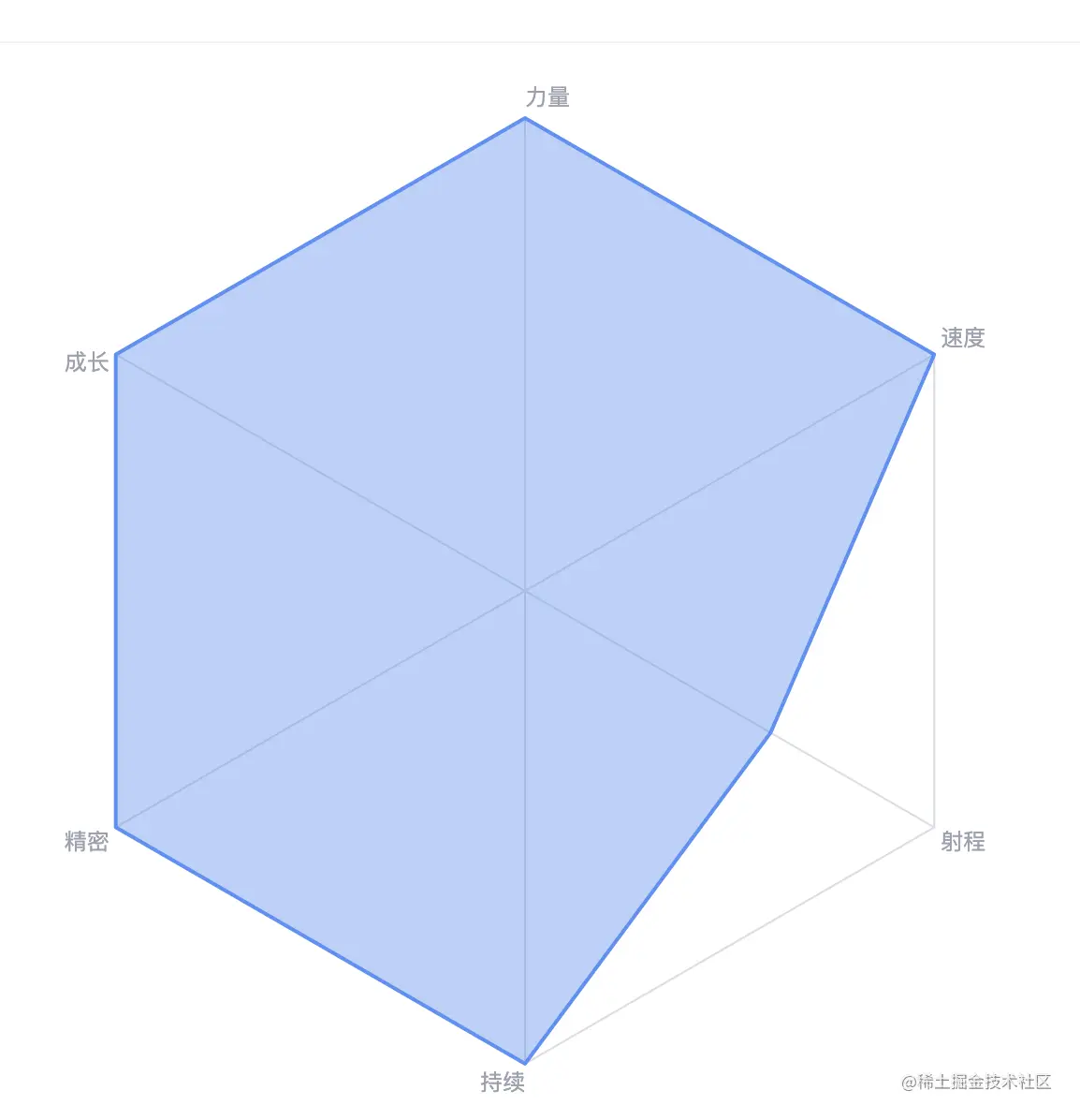 我们也经常使用线来绘制闭合的路径,从而形成可填充区域,比如面积图和雷达图,如图三和图四。