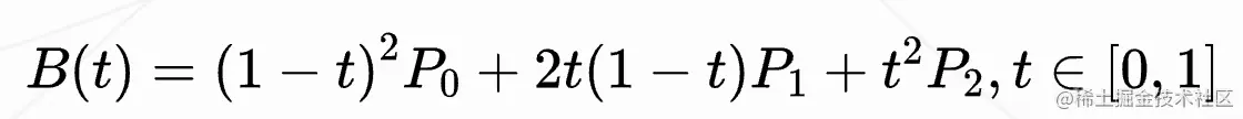 上面展示了完整的二次贝塞尔曲线的产生过程,这个过程我们经过数学推导,最终可以得到如下公式: