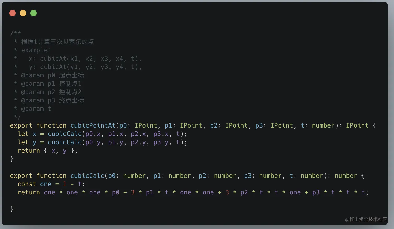 根据这个公式,我们只要变更t值,就可以得到对应的点。