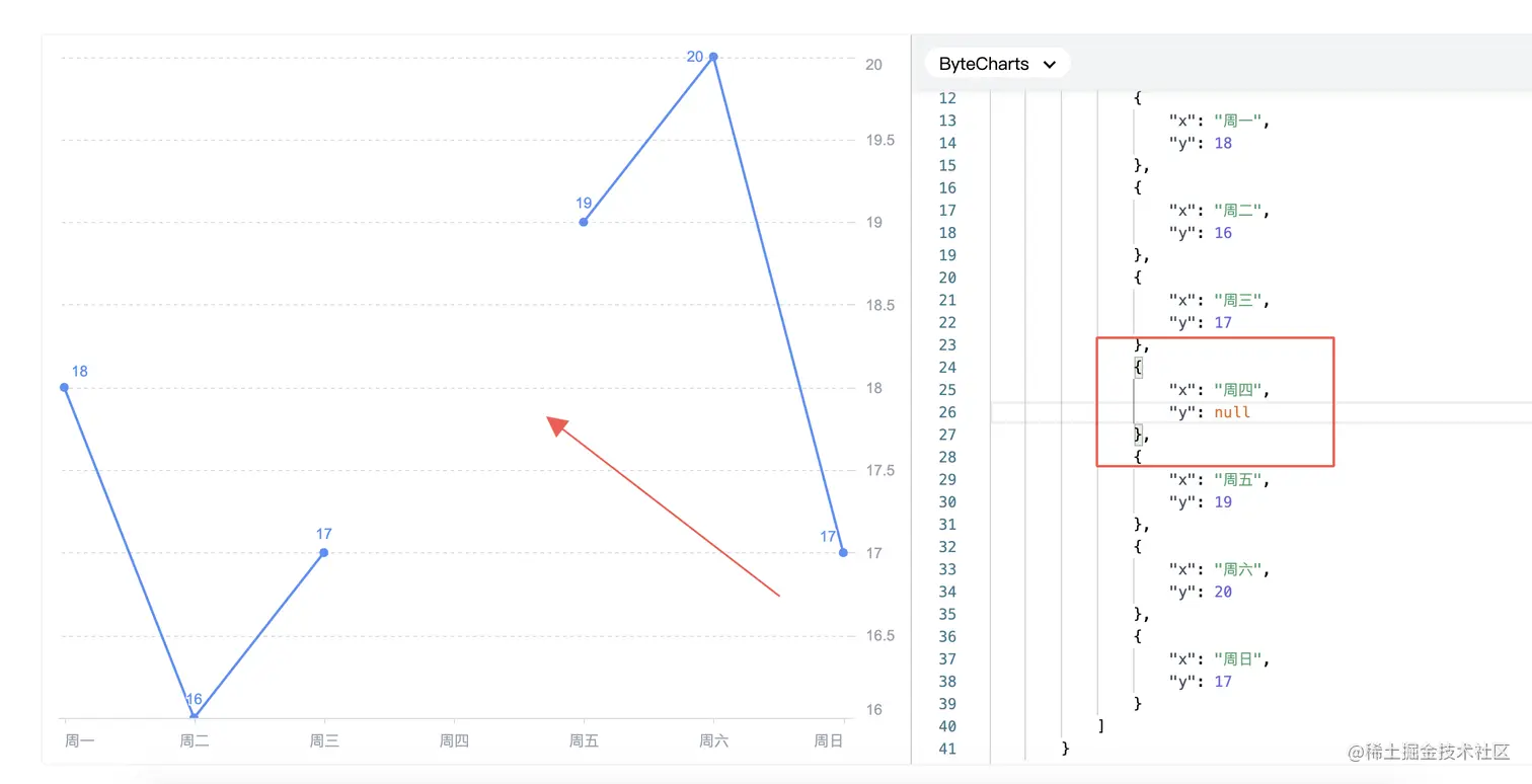 另外图八的代码中,有一段是否是空段的判断逻辑。在实际的线图应用中,我们在某些情况需要隐藏线的某些段,比如传入了空数据或者用户指定了过滤条件。