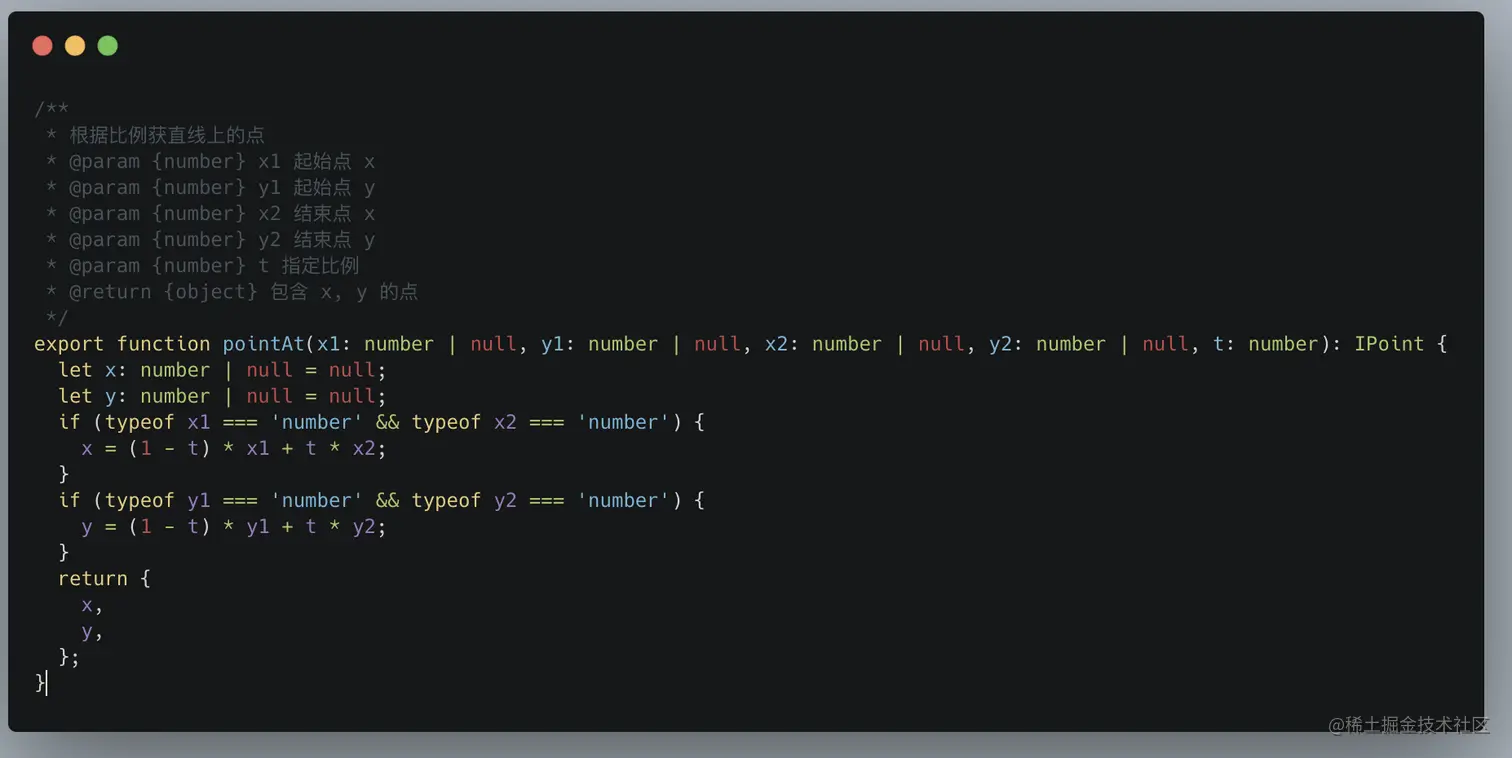 图34 所示代码中 pointAt 方法为根据t获取直线上点的方法。如下: