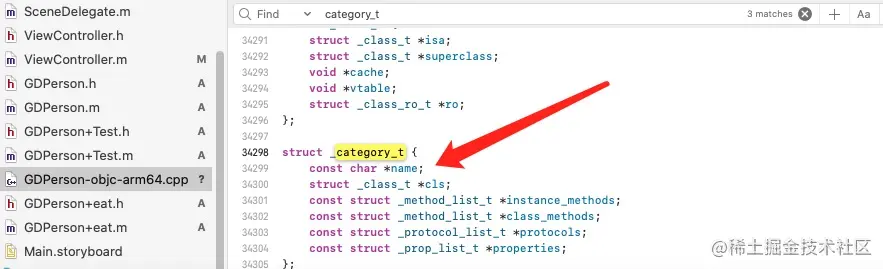 我们利用终端把Test、eat分类转成底层的c++文件,利用:xcrun -sdk iphoneos clang -arch arm64 -rewrite-objc GDPerson+Test.m