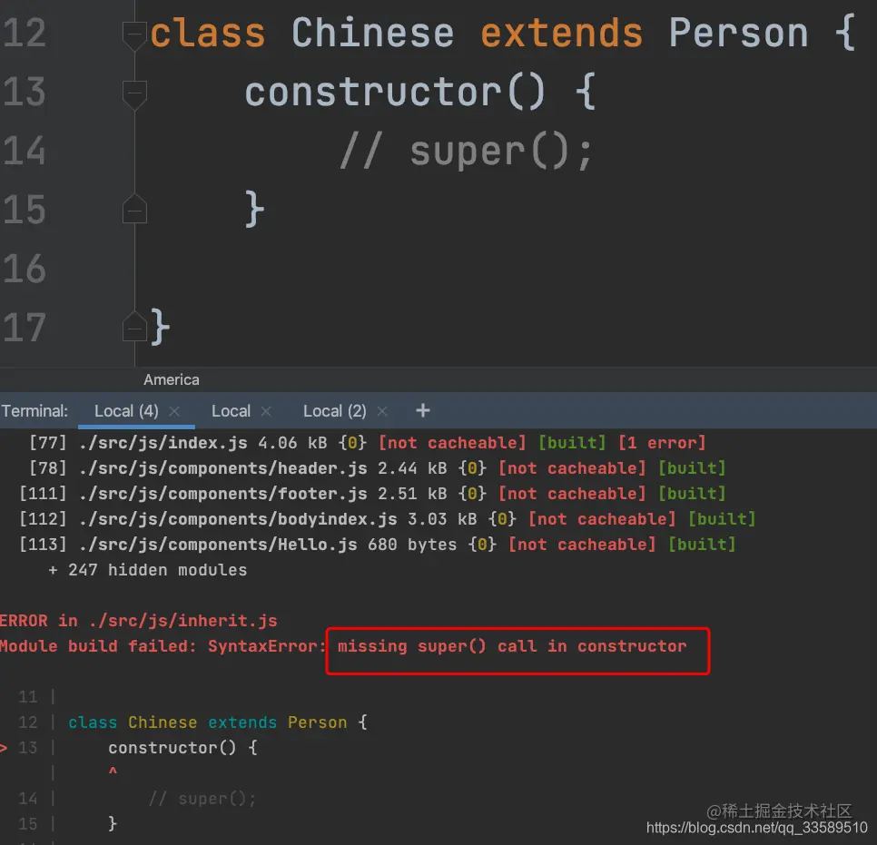 观察发现,子类必须调用 super 才可以哦,这在 Java 中也是一样的:如果一个子类通过extends 关键字继承了父类,那么,在子类的constructor 构造函数中,必须优先调用一下super()。