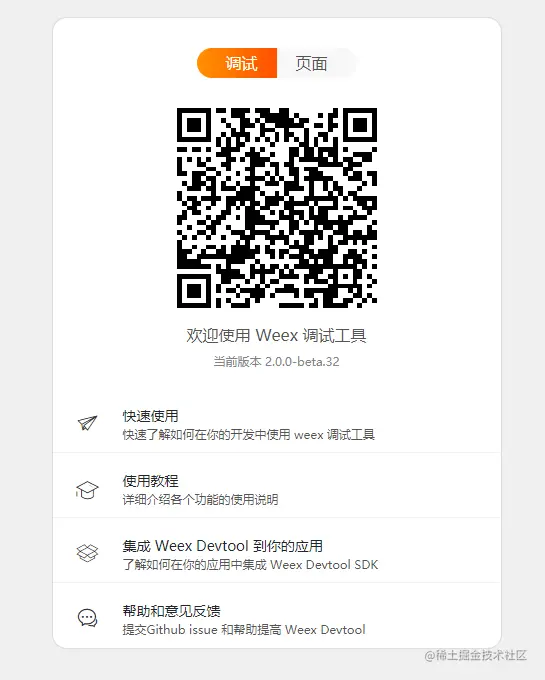 weex-toolkit 还提供了强大的调试功能,只需要执行:
