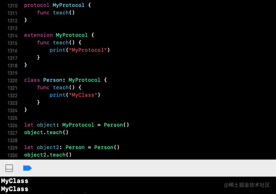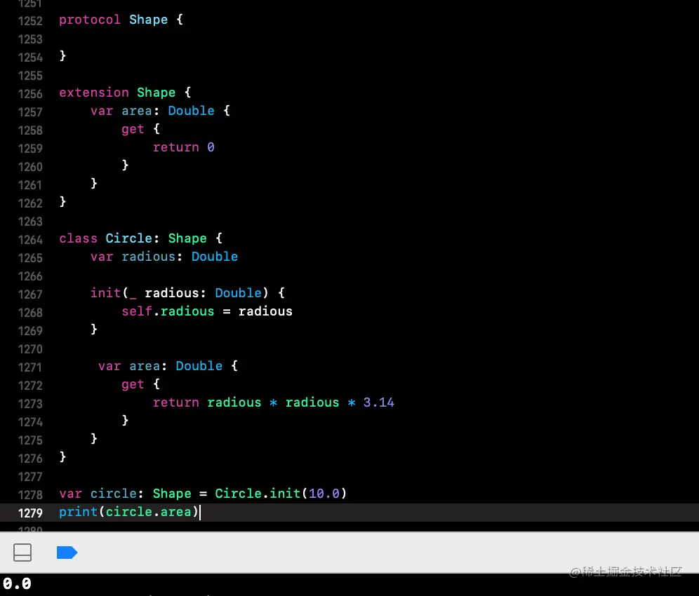 上面打印0.0是因为在extension中声明的函数的调度方式是静态调用的,在编译过程中,当前函数的地址已经确定,在调用过程中直接拿到函数地址来做跳转并进行调用,在静态调用的过程当中,对于子类来说重写area是没有意义的。