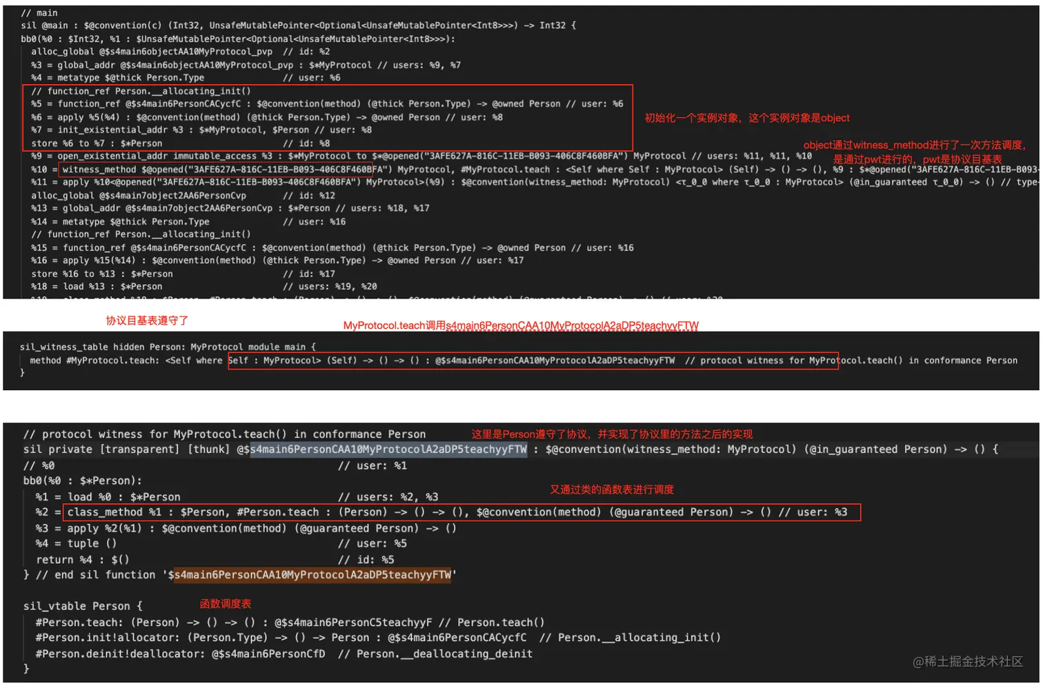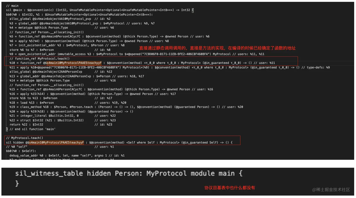协议里的函数会在遵守这个协议的类中生成一个pwt,pwt中包含了类对这个协议中函数的实现;