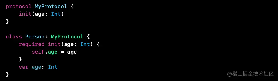 协议中可以定义初始化方法,当实现初始化器的时候必须使用required关键字