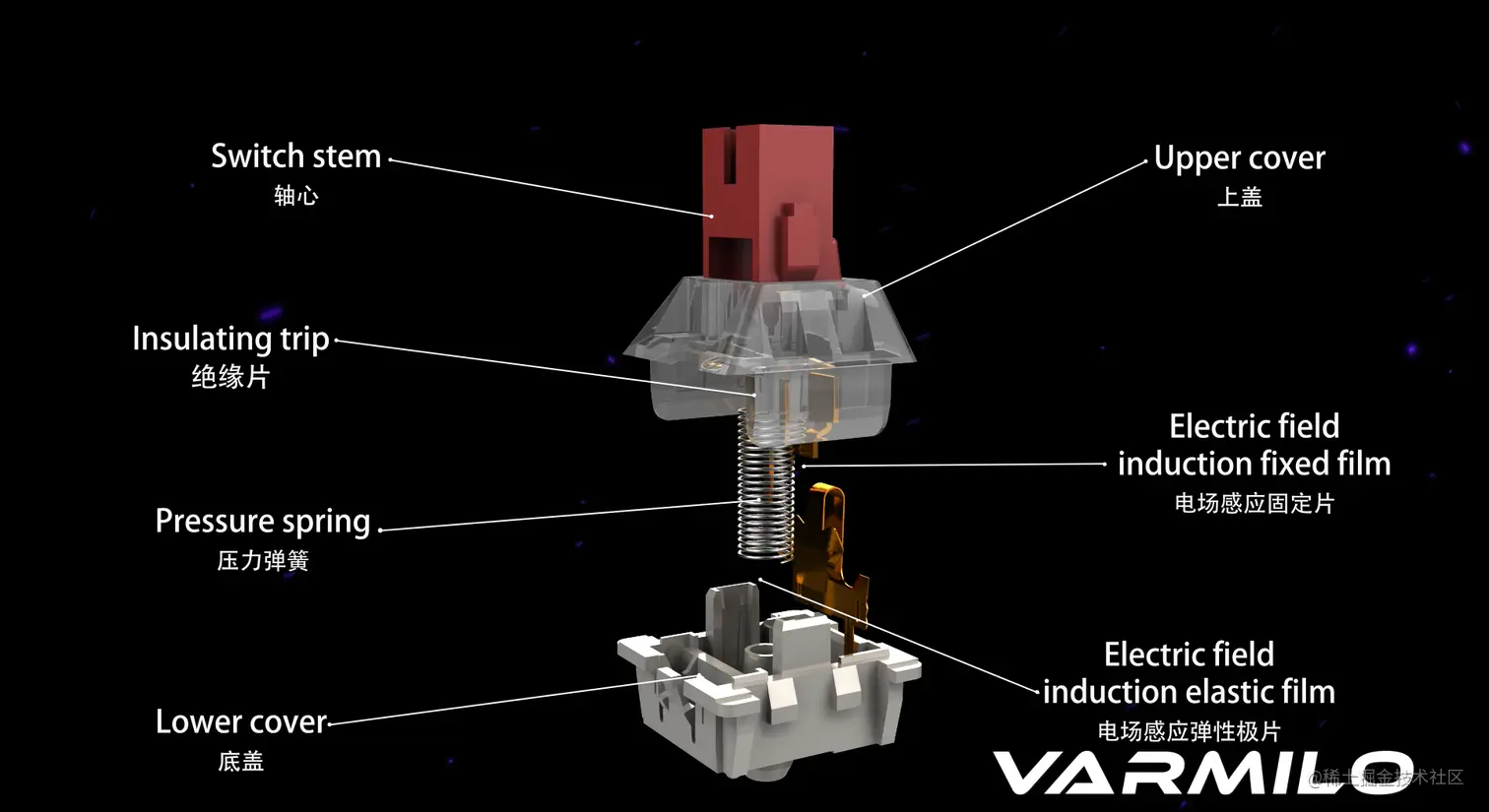 每一个按键都由一个独立的微动开关(Switch,通称为“轴”)组成