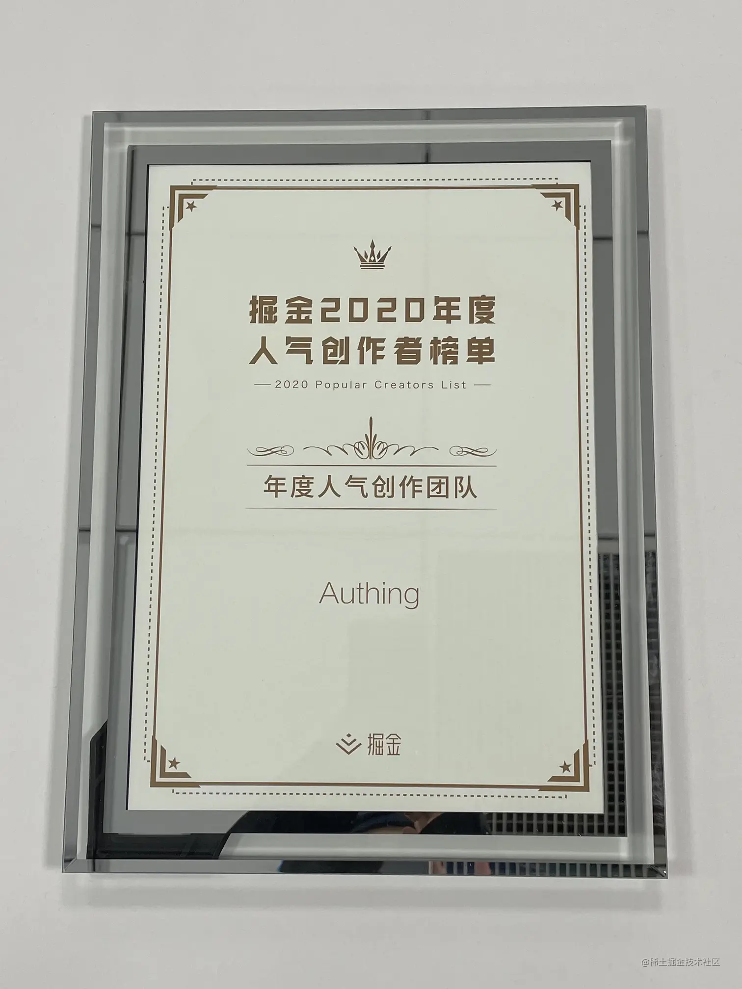2021 年 1 月底,由掘金发起的「2020 年度人气创作者榜单」打榜活动,经过一周的精彩角逐,Authing 获得了众多读者的认可,最终被网友们评选为 「2020 年度人气创作团队」。