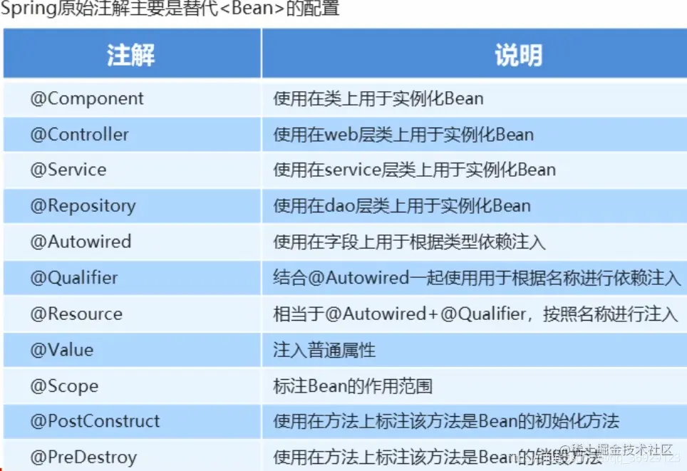 - @Component和@Controller、@Service、@Repository三个注解功能完全一致,只不过后三个一般分别用于web层,service层和dao层,更能起到表意作用。