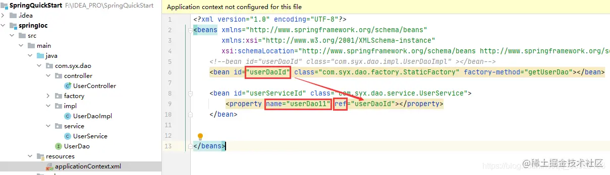 <bean id="userServiceId" class="com.syx.dao.service.UserService">