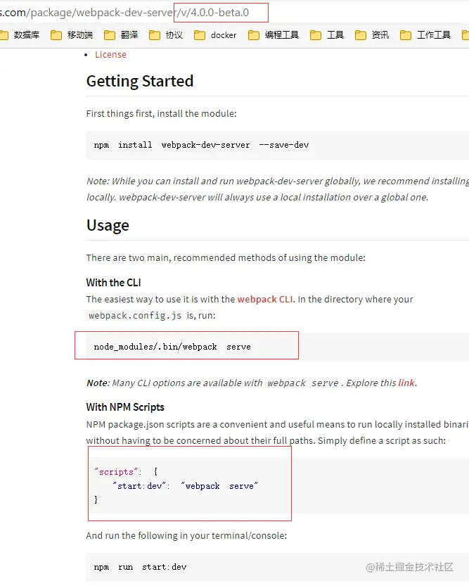 在webpack-dev-server@4.0.0beta.0文档中的命令改为了webpack serve。不过webpack-dev-server依然可以使用。