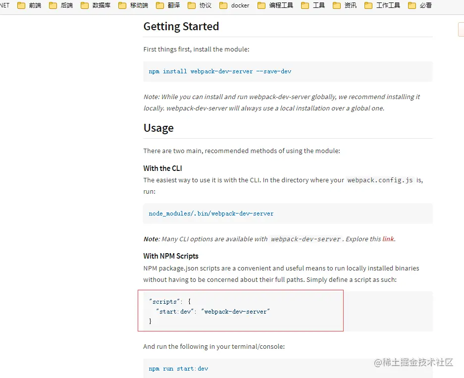 官方NPM文档中也是webpack-dev-server命令