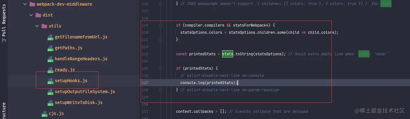 代码是在webpack-dev-middleware库中 /dist/utils/setupHook.js 模块。