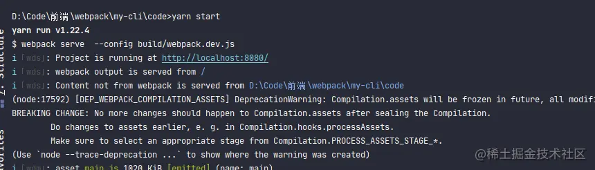 此时,如果不出意外的话, 执行yarn start:dev 就可以执行webpack-dev-server。