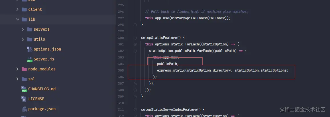 在Server.setupStaticFeature(),使用了express服务器挂载了静态文件中间件(express.static)。