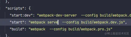 "start": "webpack serve --config build/webpack.dev.js",