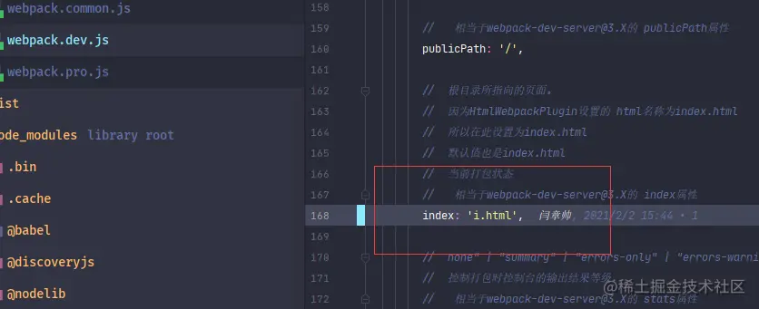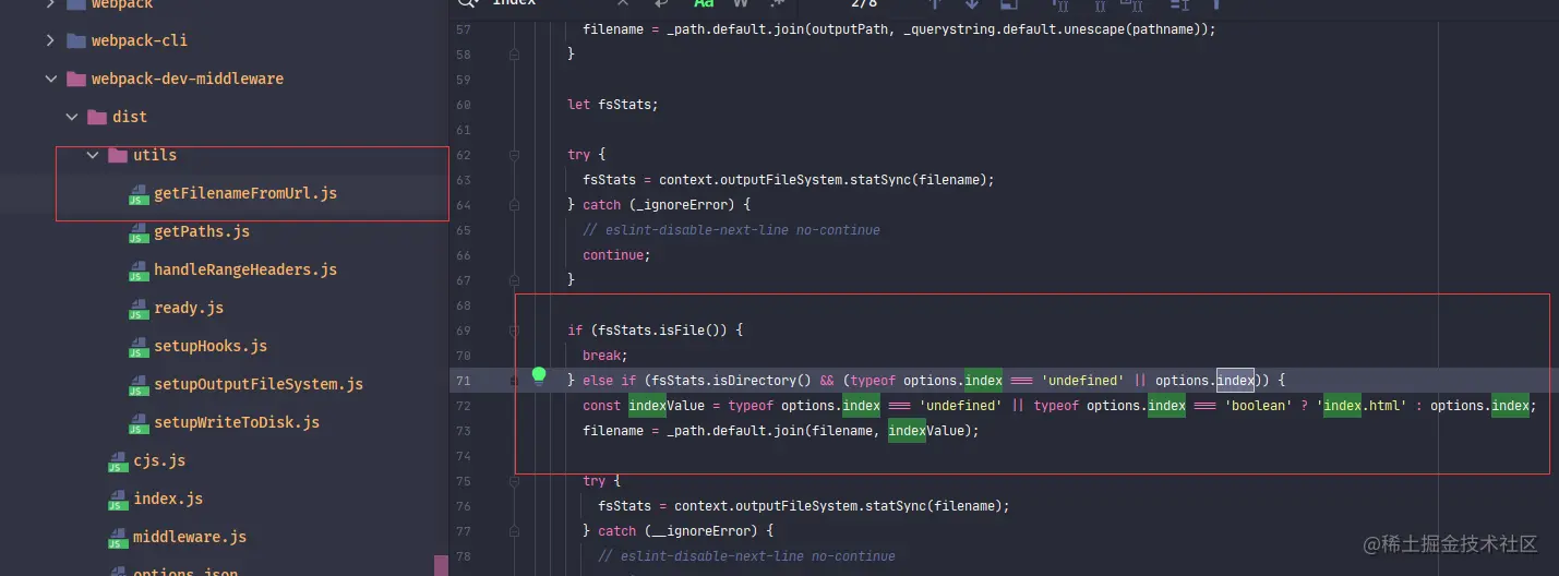 此属性是设置根目录所指向的文件,代码在webpack-dev-middleware库中 /dist/utils/getFilenameFromUrl.js 文件