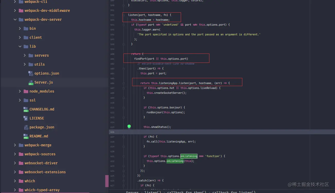 在Server.listen() 回调函数中使用 hot属性做了判断 ,当设置了hot或liveReload属性时,就会创建WebSocket· Server 。