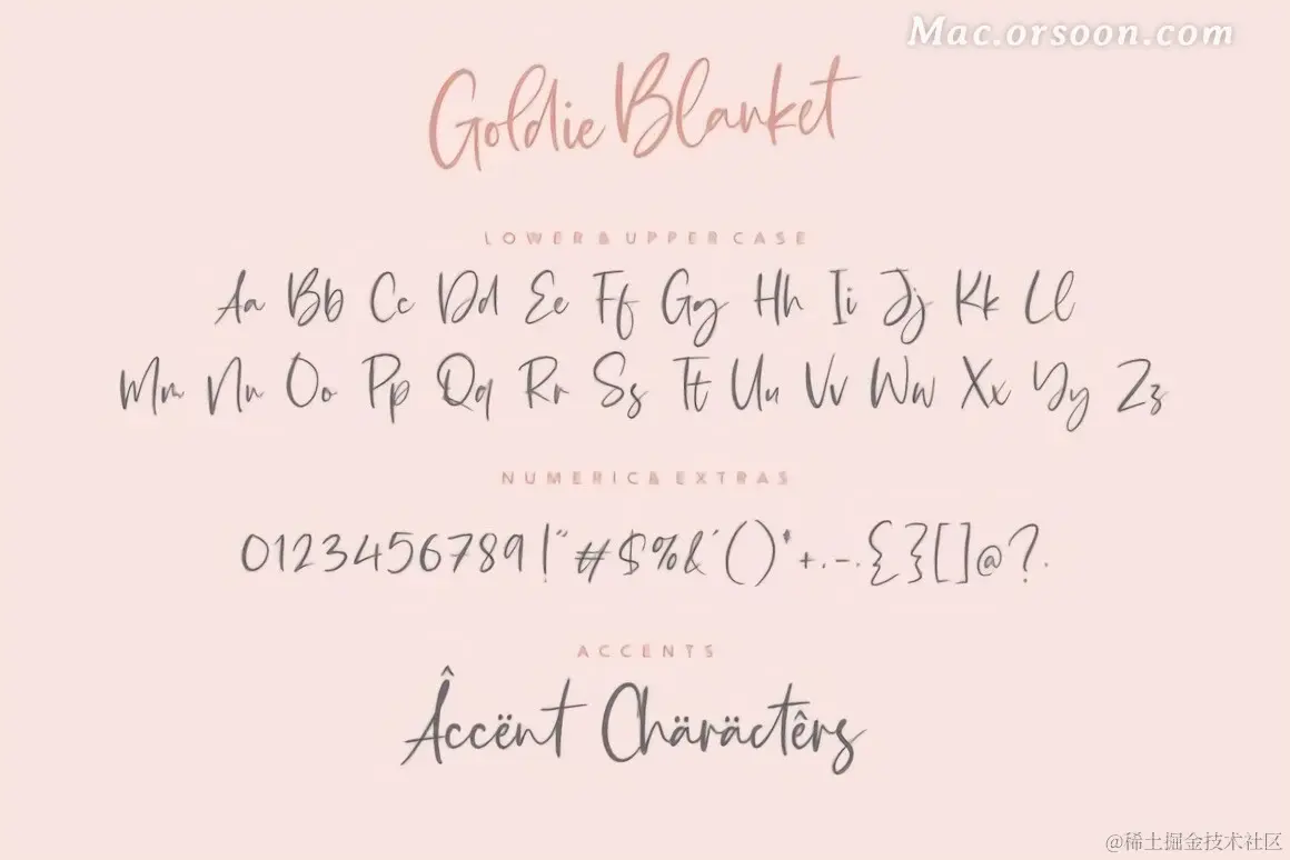 Goldie Blanket优雅手写字体该字体是PUA编码的,这意味着您可以轻松访问所有字形和斜线!