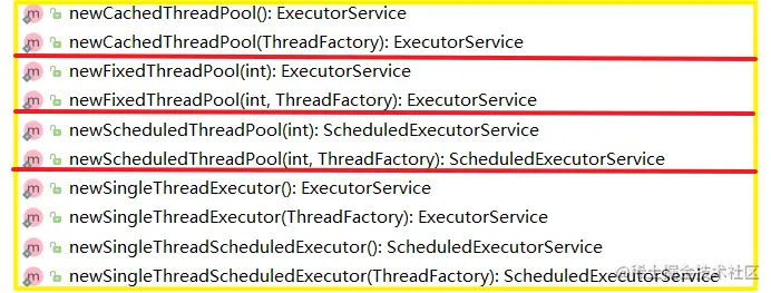 首先可以看到 Executors 提供给我们的线程池类型有这么几种