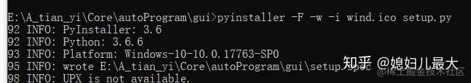 执行命令:pyinstaller -F -w-i wind.ico setup.py,如下图所示。