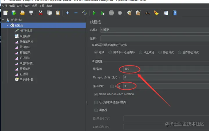 - 另一种解释,有人把线程组这里的设置叫着相对并发,其实如果请求响应时间超短时这个线程组里的线程数差不多等同并发数了,当然不能完全等同。