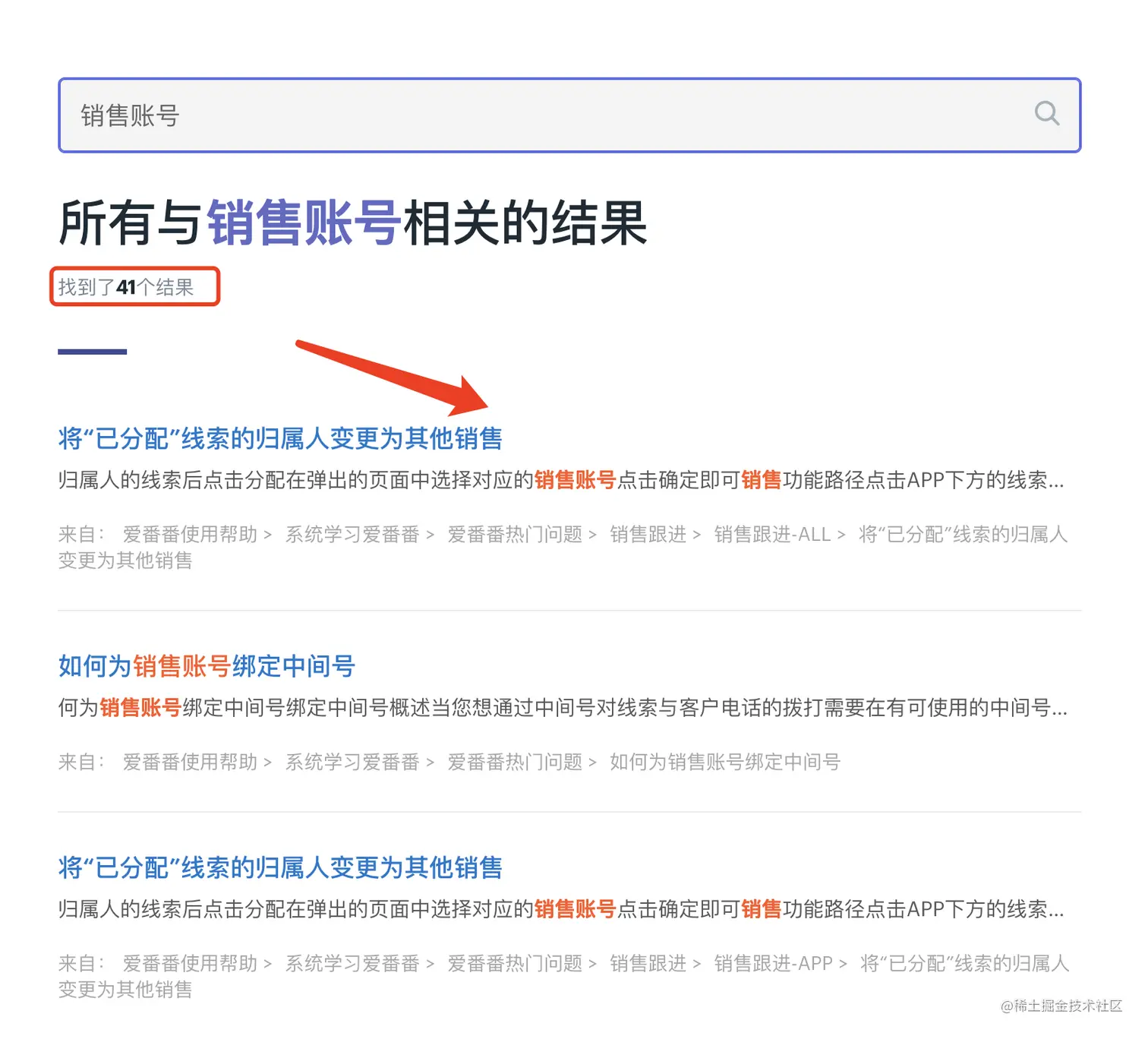 上面我们也讲到,在线帮助文档作为一个内容的聚合体,光做好一个内容的分类还是不够的。得加上一个精准有效的搜索功能。这样一方面解决了人的惰性问题,二方面提升了使用者的效率。
