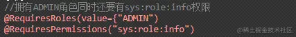 @RequiresPermissions("sys:role:info")