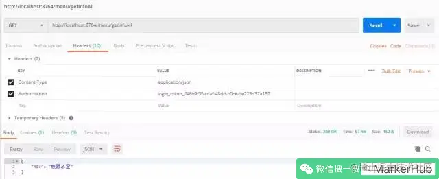 再次访问 getInfoAll 接口, 因为缓存中没有数据, Shiro 会重新授权查询权限, 拦截通过