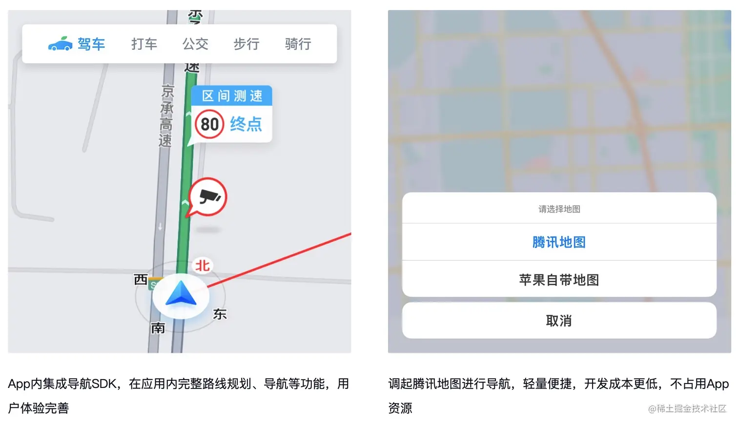 路线规划功能除了应用在纯粹的地图与导航类应用中以外,也越来越多的出现在和线下商铺、按距离派单相关的应用中,部分应用在唤起地图应用之前也会优先展示一下规划路线。