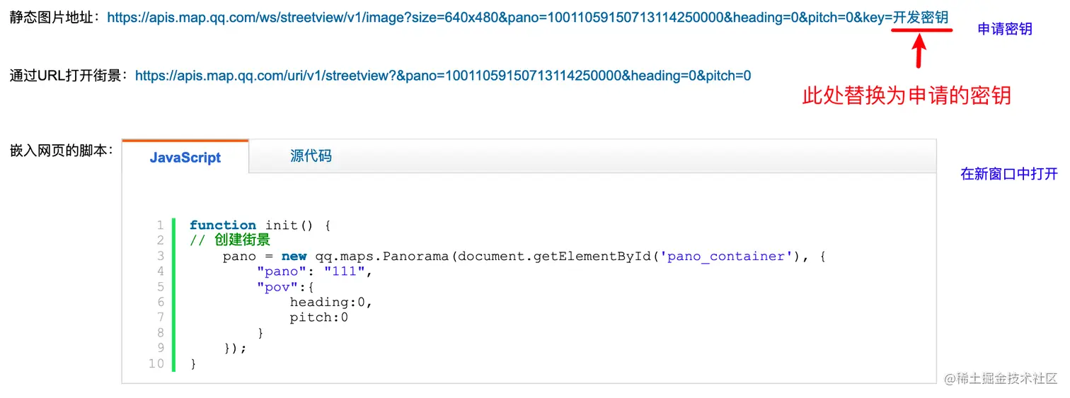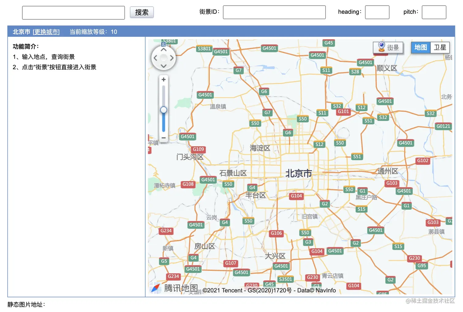 确定位置后,可以生成静态图片或将街景拾取器直接嵌入到页面中: