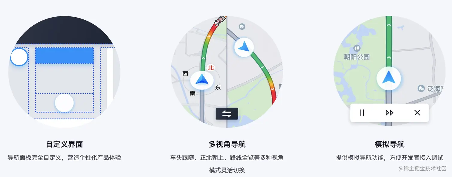 导航功能除了提供丰富的路线规划方式外,还应该整合路况信息、语音播报、智能定位等标配功能,这些要求基本没有太大差别,重点在于开发者是否能够轻松驾驭,快速将应用开发完善。
