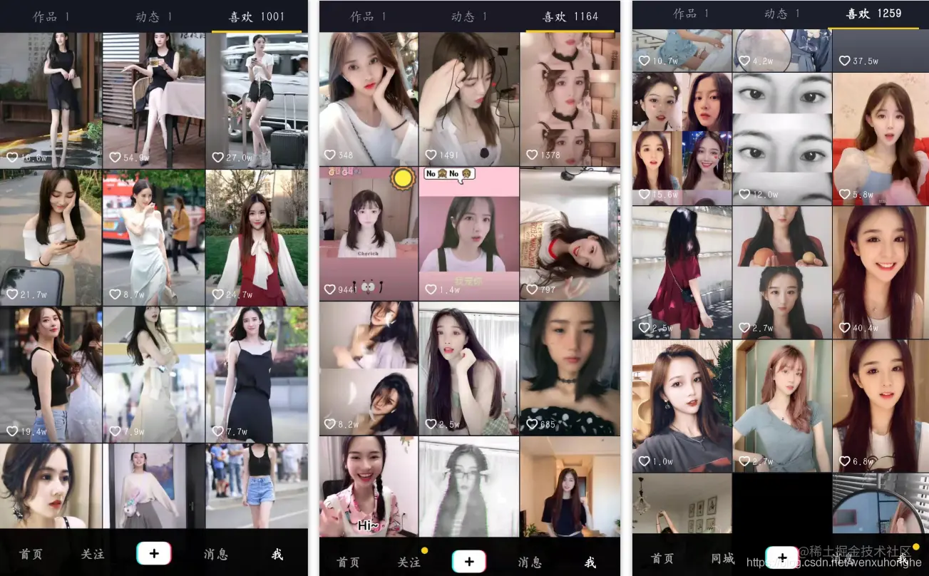 有趣的是,根据抖音的推荐算法,连着刷几天之后,抖音里给你推荐的全是漂亮小姐姐了。 刚开始刷的时候,可能几十条里都没有一个漂亮小姐姐,而刷几天之后,基本上刷到的每条视频里都是漂亮小姐姐。 看,这是我刷了三天的 “成果”, 断断续续刷了三天时间,已经 “点赞” 了两百多条漂亮小姐姐的视频。