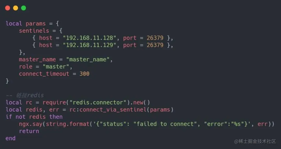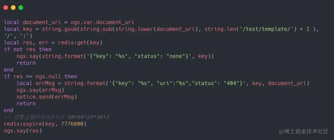 在后台配置中已经提到 Lua 链接 Redis 以及针对不同的请求方式的拦截处理,接下来看一下在用户端相关处理,代码如下:
