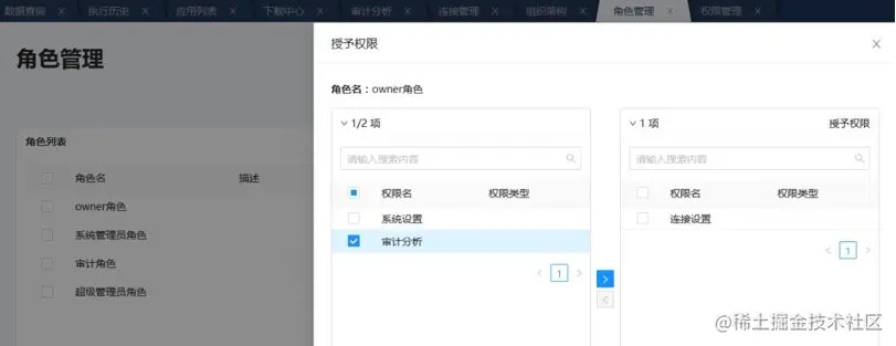 对于权限体系,主要实现了角色和权限两大层面,可以根据不同的角色类型进行不同的权限配置管理。